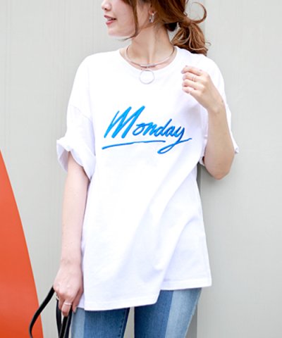 刺繍ロゴがかわいいボーイフレンドTシャツ
